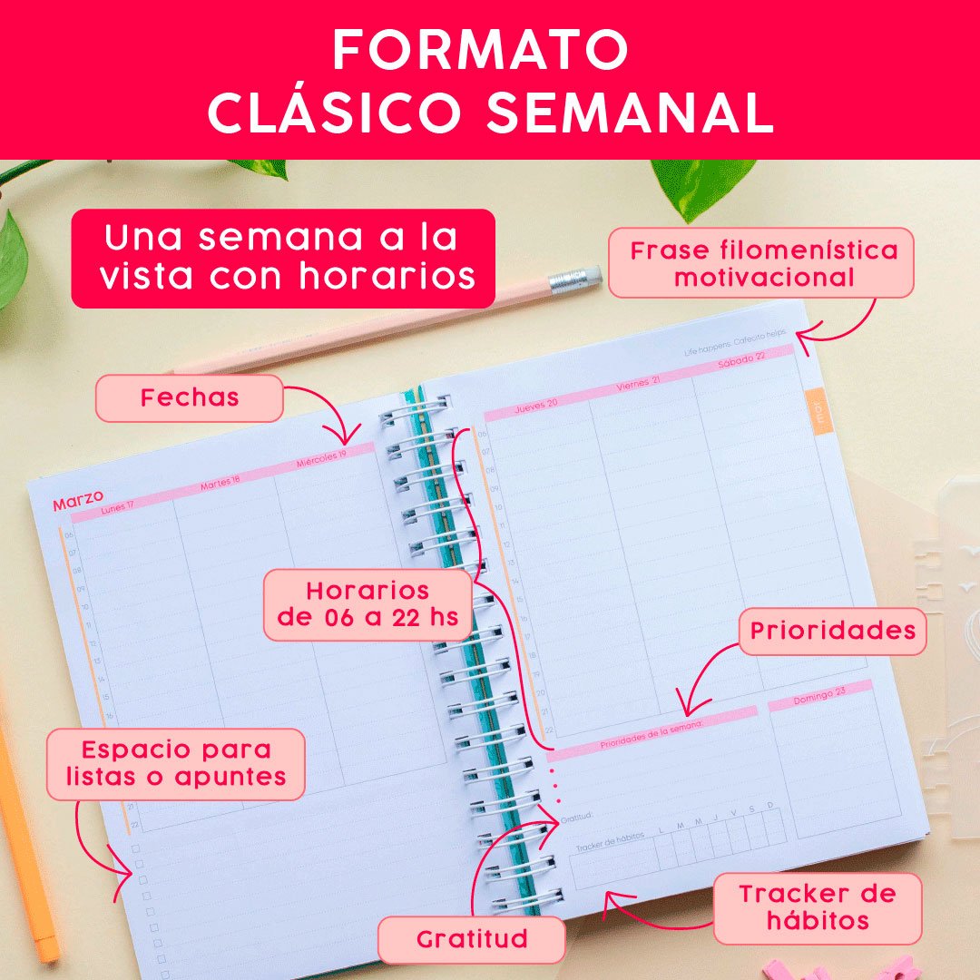 La Agenda Filomena está creada con todo el amor del mundo para mujeres maravillosas como vos. Está diseñada con un sistema de organización especial para ayudarte a encontrar el balance y conectar con tus metas, conocerte todavía más y tener un día a día más equilibrado. Viene en tamaño A5 y dos formatos interiores.