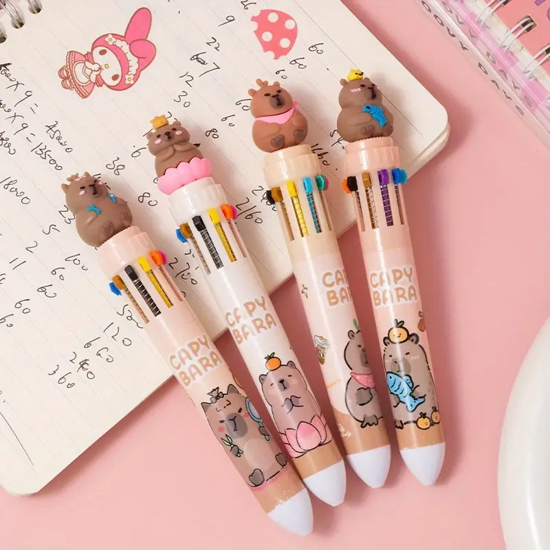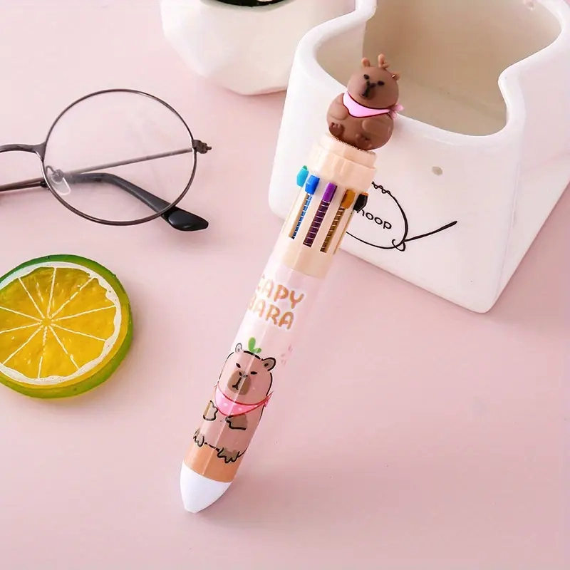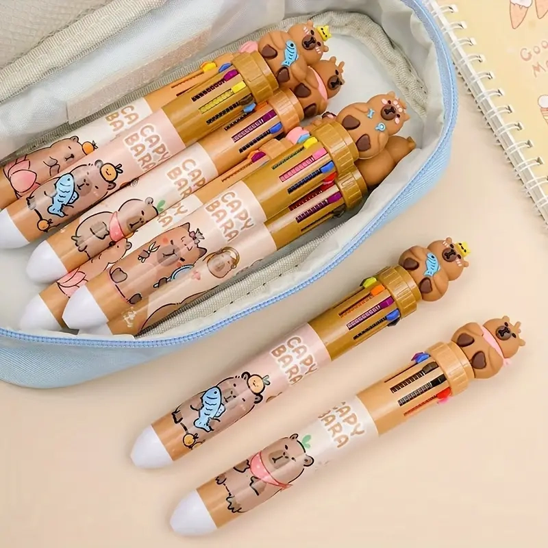 ¡Sumale ternura y diversión a tu escritura! Estos adorables bolígrafos Capibara cuentan con 10 colores diferentes en un solo lápiz, ideales para notas, agendas, apuntes o simplemente darle vida a tu día. Cada bolígrafo tiene un diseño único con capibaras en 3D súper tiernas en la parte superior. Colores incluidos: negro, azul, rojo, verde, amarillo, violeta, rosa, celeste, naranja y marrón.