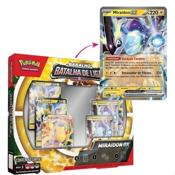 ¡Con el Baralho Batalha de Liga Miraidon EX, estarás listo para enfrentarte a cualquier desafío y llevar tu juego al siguiente nivel!