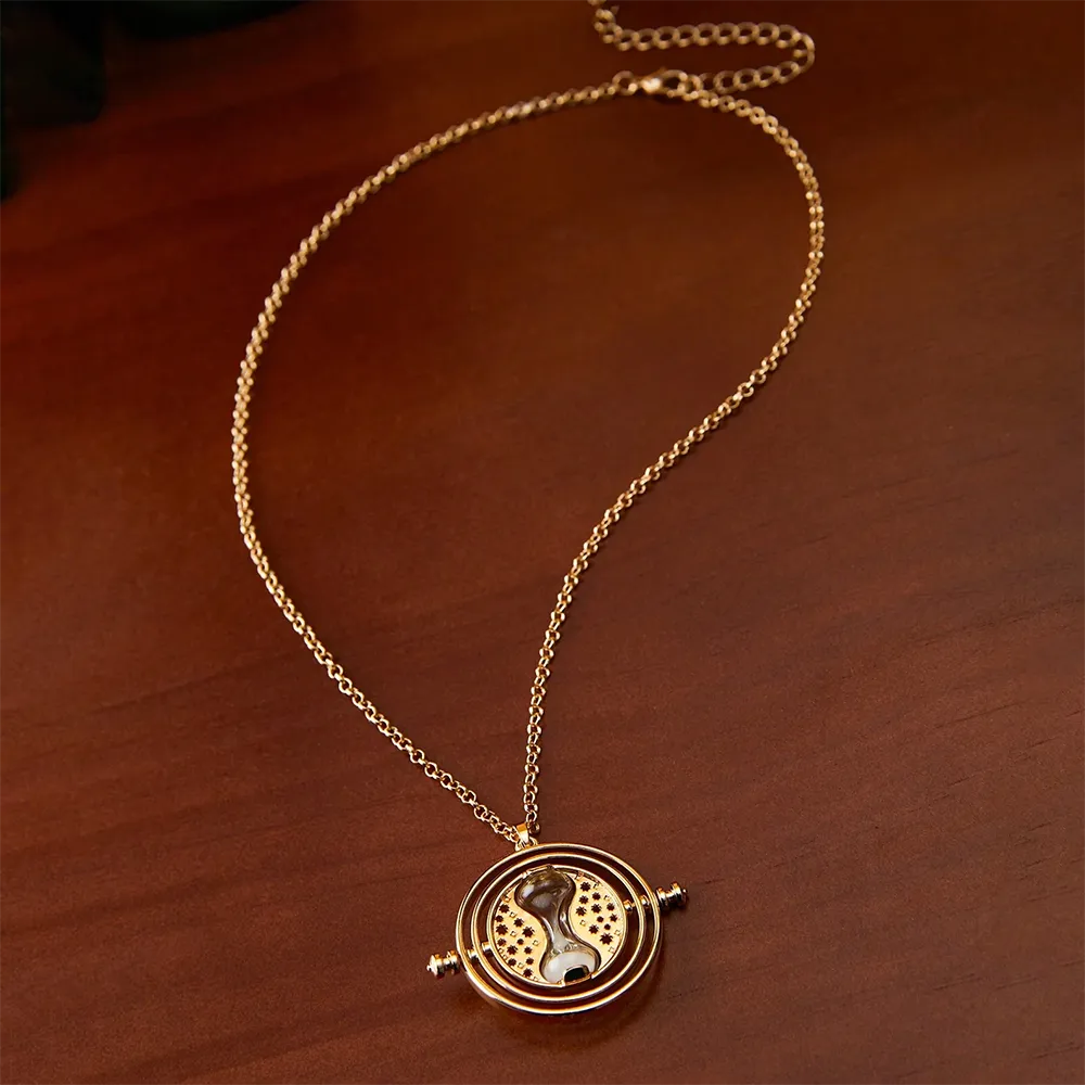 Revive uno de los objetos mágicos más icónicos del mundo de Harry Potter! Este Collar Giratiempo es una réplica detallada del artefacto usado por Hermione Granger. Con sus anillos giratorios y un elegante diseño dorado, es el accesorio perfecto para fans que quieren llevar un pedacito de magia todos los días.