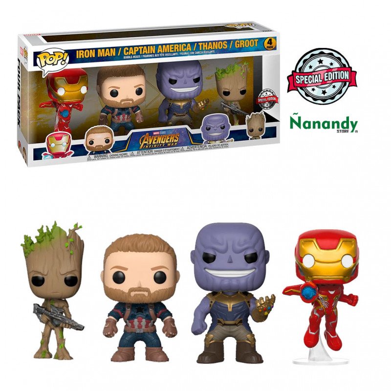 Funko Pop Marvel Avengers Infinity War Exclusive – Iron Man / Captain America / Thanos / Groot (4 Pack)