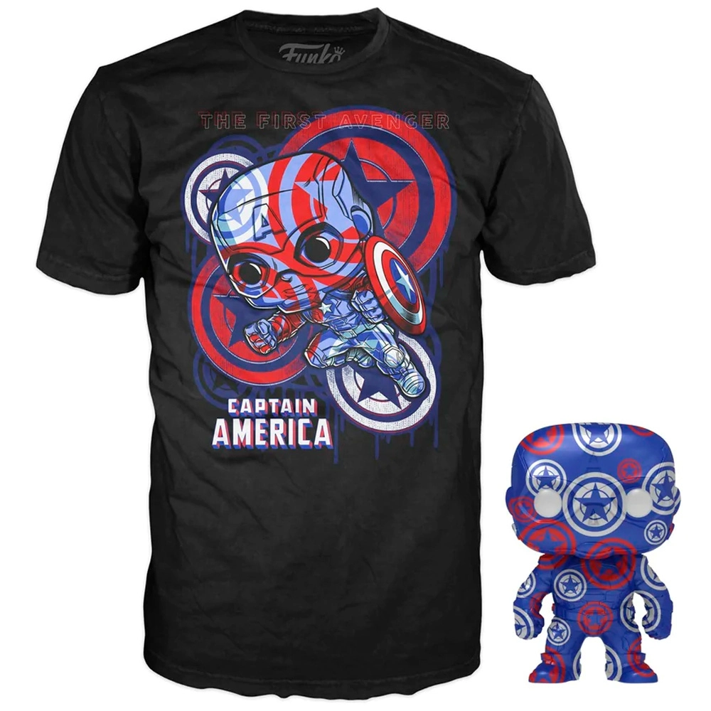 De la nueva línea ‘POP! & Tee’ de Funko llega este genial set compuesto por una remera de alta calidad y una exclusiva figura de vinilo POP! de Captain America art series (10 cm de alto) sólo disponible en este set.