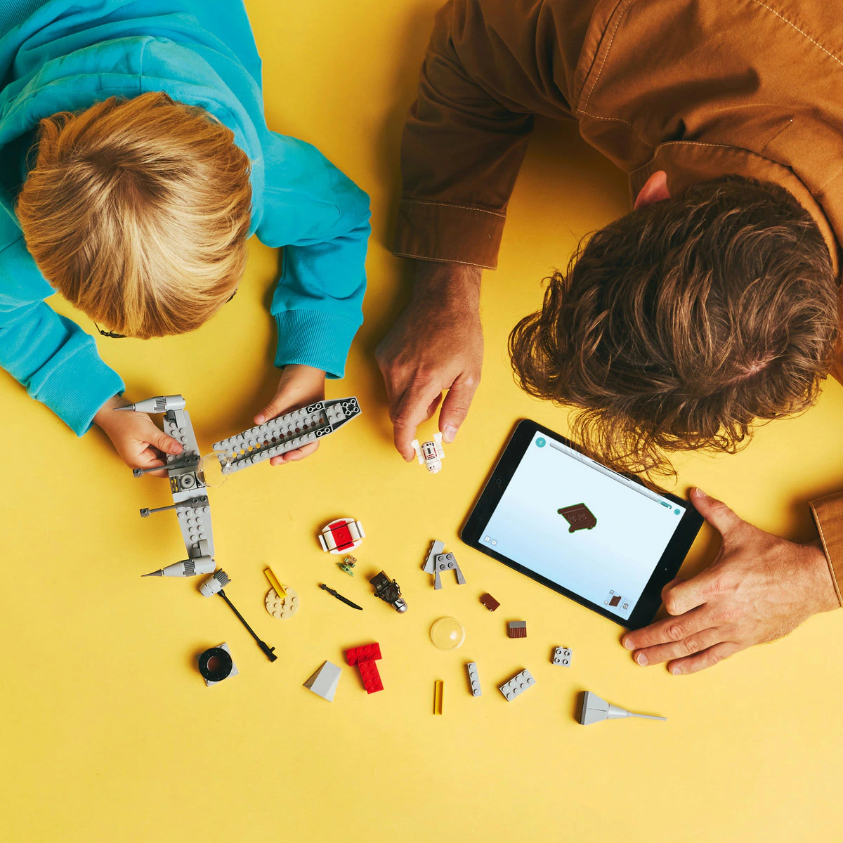 ¡Vuela rumbo a la acción en el Caza Estelar N-1 de Mando y Grogu! Llena el tanque en la estación de combustible. Sube a la cabina con el Mandaloriano, ayuda a Grogu a ocupar el espacio para pasajeros y despega. Explora otros planetas con el coche flotante de Grogu y la mochila propulsora del Mandaloriano. Haz equipo con R5-D4 y defiéndete de los enemigos con el Sable Oscuro de Mando.