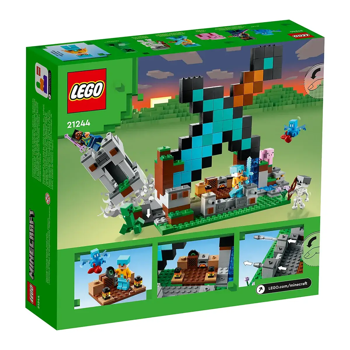 El set lego Minecraft The sword outpost (21244), con 427 piezas, es un playset diseñado para niños mayores de 8 años que combina la creatividad de lego con el universo de Minecraft. Este conjunto permite construir una base en forma de espada de diamante gigante, un arma icónica del juego, integrada en una montaña.