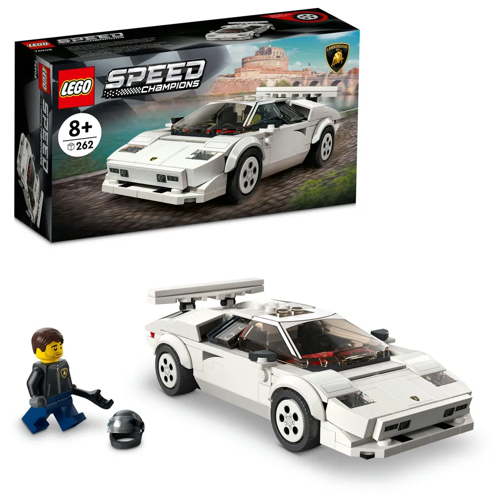 Los niños y los entusiastas de los coches tienen ahora la oportunidad de explorar uno de los deportivos más emblemáticos del mundo con el coche de carreras LEGO Speed Champions Lamborghini Countach (76908) para niños a partir de 8 años. Impresionante desde todos los ángulos, este detallado modelo de coche réplica de Lamborghini con minifigura de piloto de carreras LEGO ofrece una atractiva experiencia de construcción, es perfecto para exponer y resulta impresionante para la épica acción de las carreras. Este modelo de coche deportivo de juguete coleccionable incluye instrucciones de construcción impresas y digitales. Disponible en la aplicación gratuita Instrucciones de construcción LEGO para smartphones y tablets, la guía digital interactiva incluye increíbles herramientas de zoom y rotación que permiten visualizar este modelo desde todos los ángulos mientras se construye. Los sets de construcción LEGO Speed Champions ofrecen versiones construibles de los coches más importantes y conocidos del mundo. Diseñados para niños y aficionados al automóvil de todas las edades, los modelos LEGO de coches con detalles auténticos también son ideales para emocionantes carreras contra otros coches de juguete o sets de coches de la gama Speed Champions como Aston Martin, Chevrolet Corvette, Fast and Furious Dodge Charger y muchos más. El coche LEGO mide más de 4 cm de alto, 15 cm de largo y 7 cm de ancho. Contiene 262 piezas.