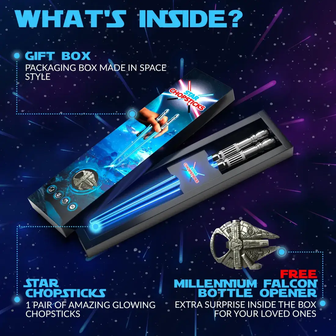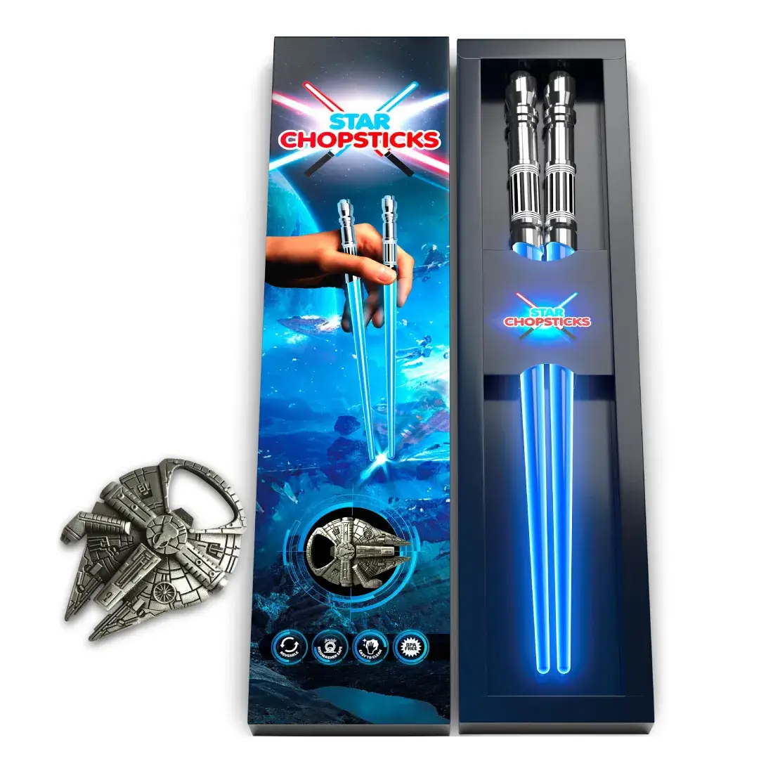 Palillos Iluminados Star Chopsticks + Abridor Millennium Falcon