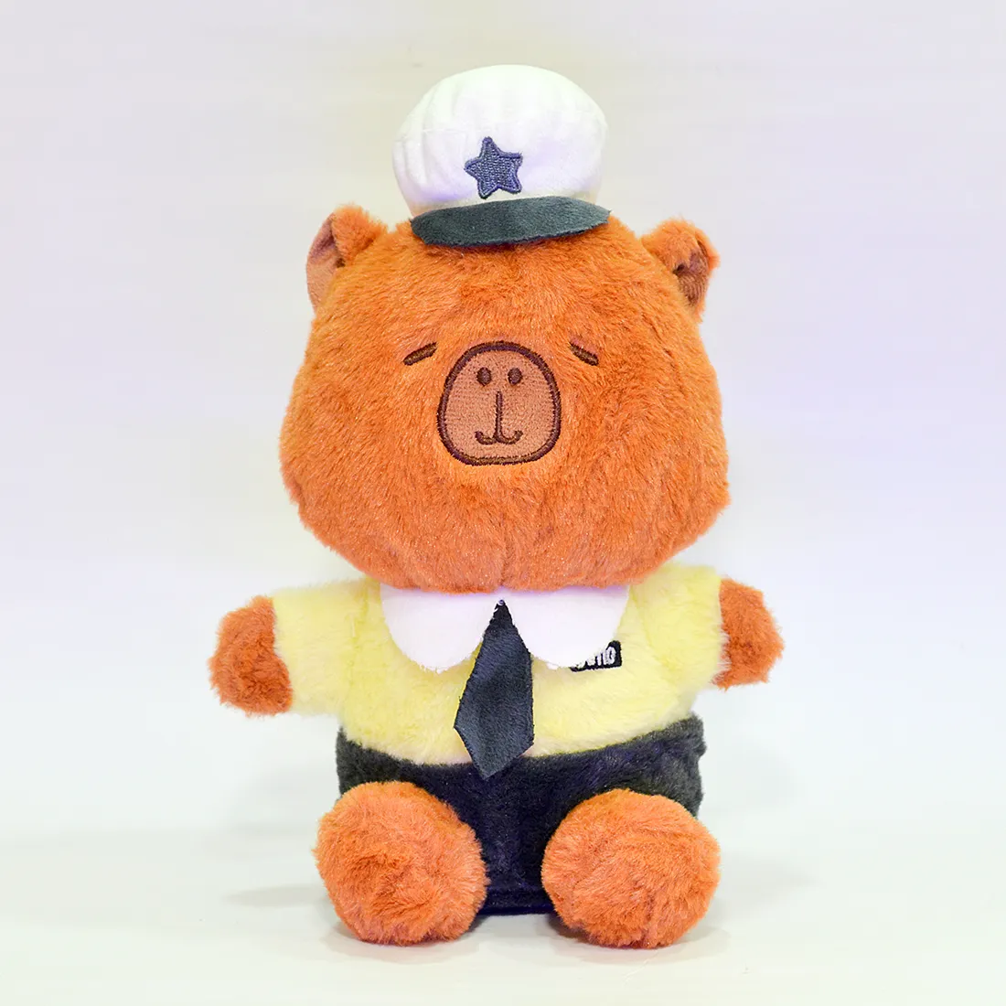 ¡Dale un toque de ternura y estilo a tu colección con este adorable peluche de capibara elegante! Con una altura de 25 cm, este simpático capibara viste un uniforme con camisa celeste, corbata negra y gorra blanca, listo para conquistar corazones con su look profesional y su carita encantadora. Su textura ultra suave y su diseño detallado lo convierten en el regalo perfecto para fans de los peluches únicos y coleccionables.
