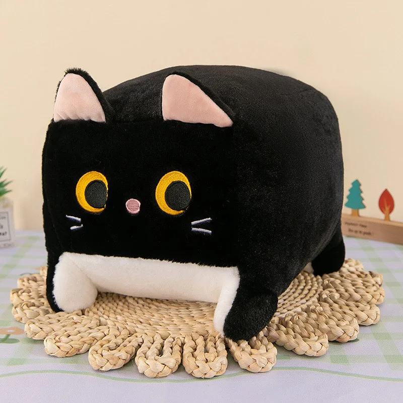 Este peluche de gato en formato cuadrado con ojitos saltones es súper suavecito y tierno, está disponible en 4 colores diferentes.