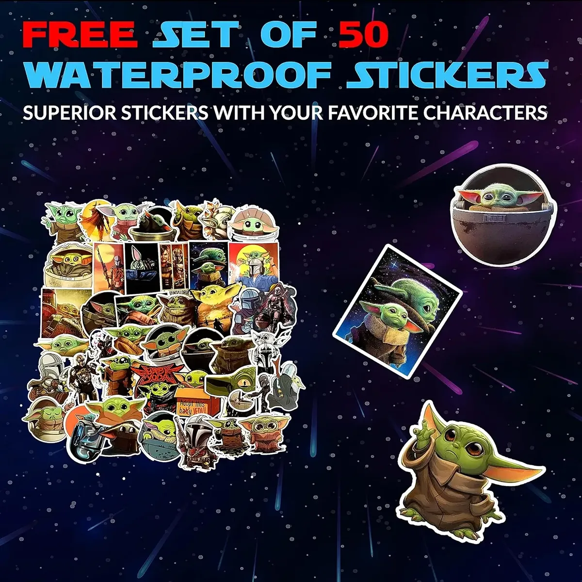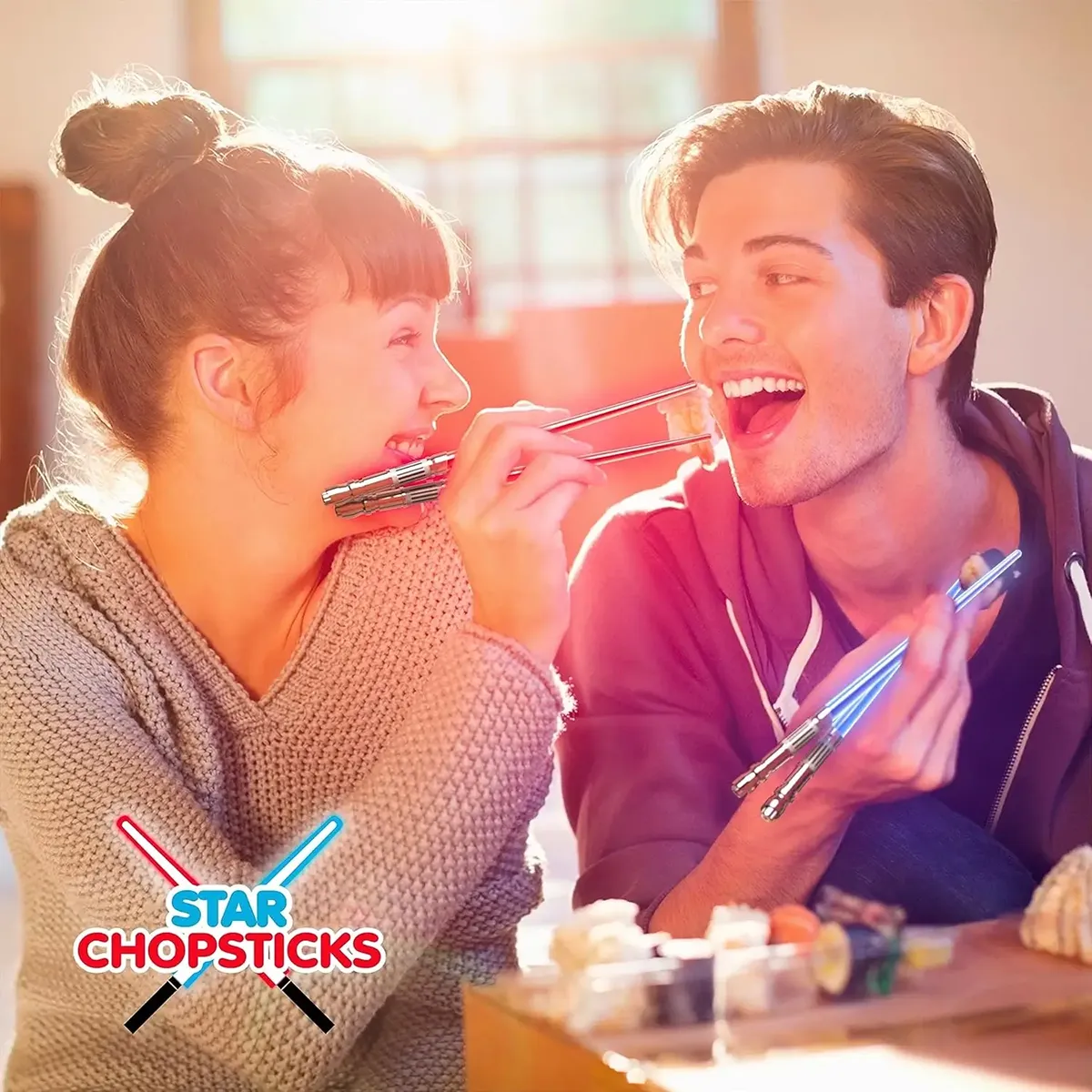 Comé como un verdadero maestro jedi! Este increíble set de star chopsticks incluye 4 pares de palillos con luz led, inspirados en los sables de luz más famosos de la galaxia. Iluminan en colores rojo, azul, verde y violeta, ¡perfectos para una cena épica! Además, el pack incluye un abridor de botellas metálico con forma del millennium falcon y un set de stickers impermeables de Star Wars con personajes como baby Yoda, mandalorian y más. Ideal para fans, coleccionistas o como regalo original.