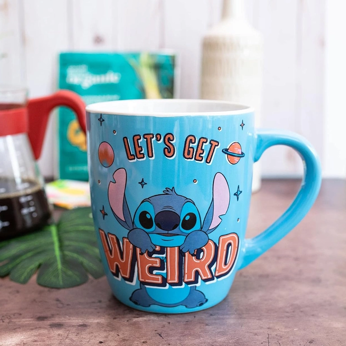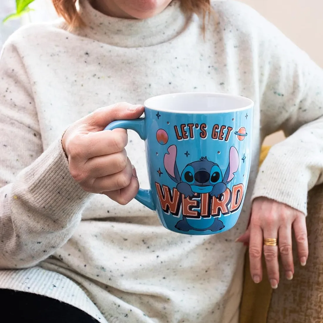 Disfrutá tus bebidas favoritas con este divertido tazón oficial Disney de Stitch con el mensaje “Let’s Get Weird”. Con capacidad para 739 ml, está hecho en cerámica de alta calidad con colores vibrantes y diseño resistente al microondas y lavavajillas. Ideal para empezar el día con energía y una sonrisa, o para regalar a los fans del extraterrestre más adorable.
